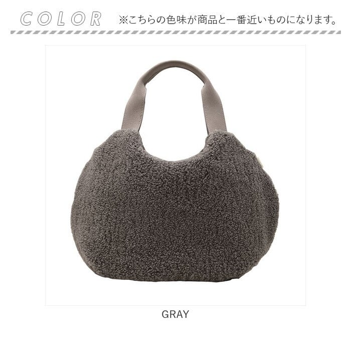 ・カフェやお散歩、リラックスタイムに似合う柔らかなカラーとデザイン。ふんわりと肌触りの良いボア素材を丸みのあるフォルムに仕上げました。
