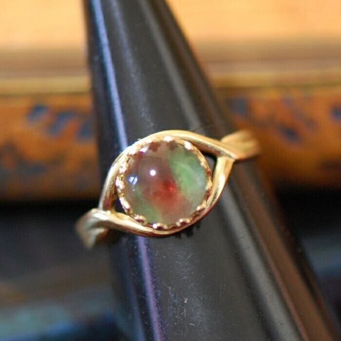 ・角度によって赤色の入り方が変化して見えるとても不思議なルースを使用。