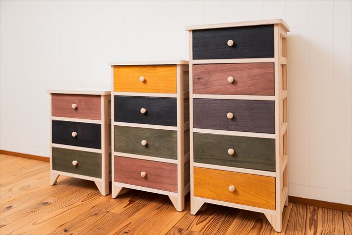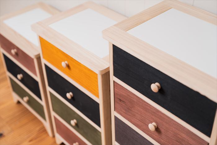 ・引き出しを入れ替えることで着せ替えが出来るチェスト。