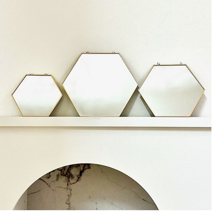 ・六角形のミラーは風水的にも良く玄関やリビングに飾る事で金運や仕事運がアップすると言われています。