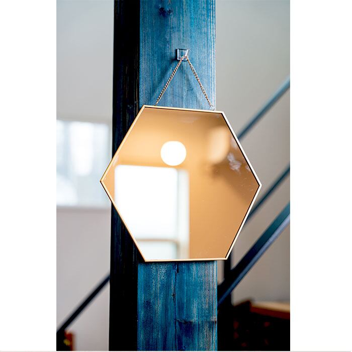 ・お部屋になじみやすいのにポイントになる六角形のオシャレなミラー。