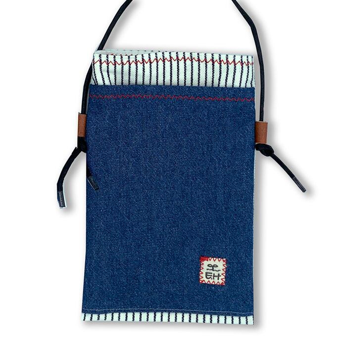 ・ヒッコリーストライプと無地のオックスコンビのスマホショルダーシリーズ。