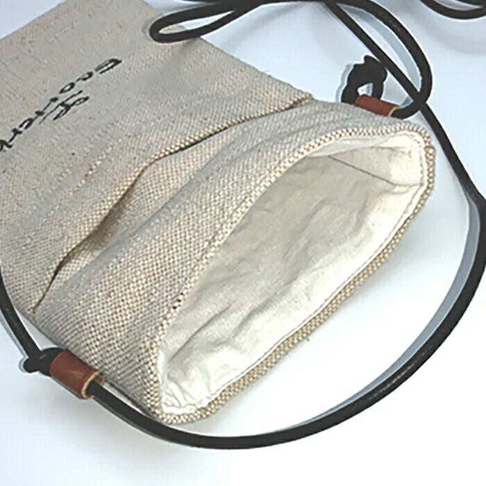 ・ナチュラルなイメージのしっかりしたコットンとジュートの素材で作られたスマホショルダー。