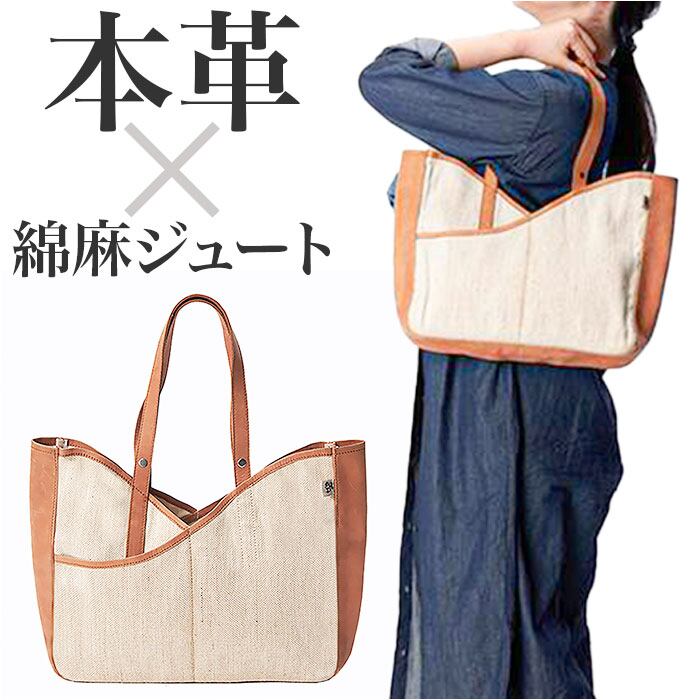 ・バングラデシュの優れた皮革メーカーが作った、本革と綿麻ジュートが組み合わさったトートバッグ。