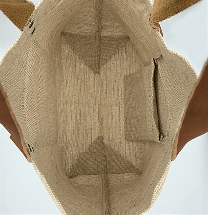 ・本体はジュートコットン、持ち手部分は本牛皮革。普段使いにとても便利、裏がない一重仕立て。