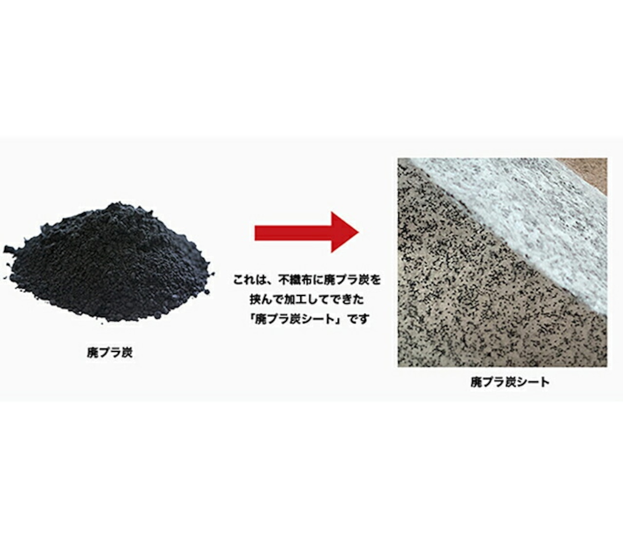 ・CO2を極限まで減らして作られた顆粒炭を不織布でプレスして作られた厚手のシート。
