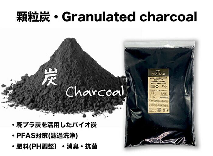 ・[CO2ゼロの廃プラエコ顆粒炭]SDGs企画 植物の活性を促す 消臭、抗菌、PFAS対策濾過洗浄。