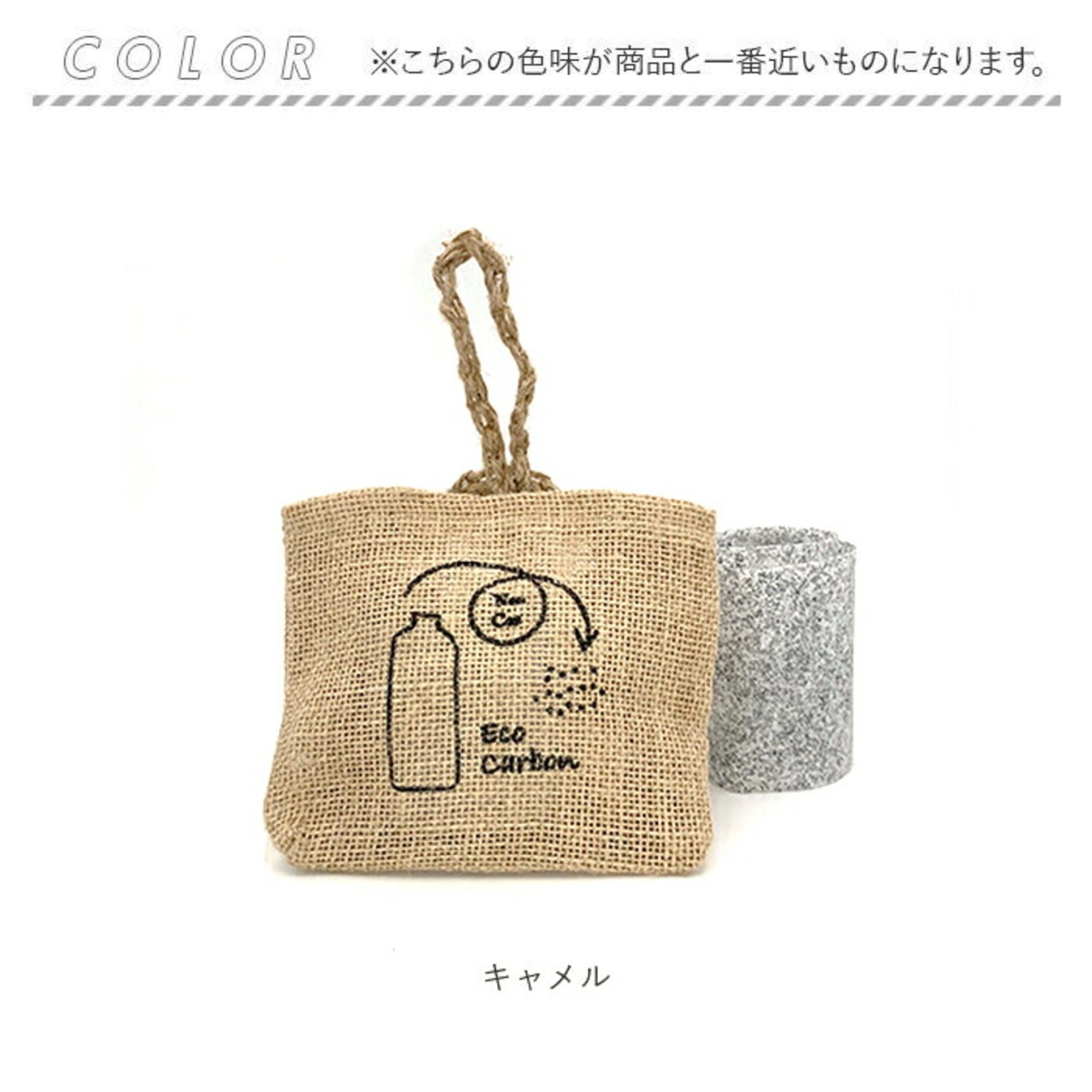 ・ミニバッグは小物入れとして、別の用途でも使えます。またみにバッグはジュートで作られており、ジュートは生息時、通常の木に比べて5〜6倍CO2吸収量が多く成長が早い植物。