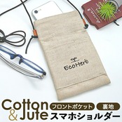 ・ナチュラルなイメージのしっかりしたコットンとジュートの素材で作られたスマホショルダー。