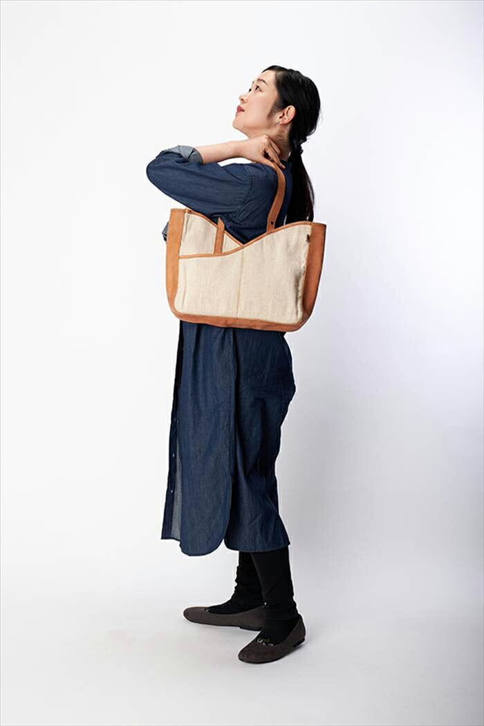 ・バングラデシュの優れた皮革メーカーが作った、本革と綿麻ジュートが組み合わさったトートバッグ。