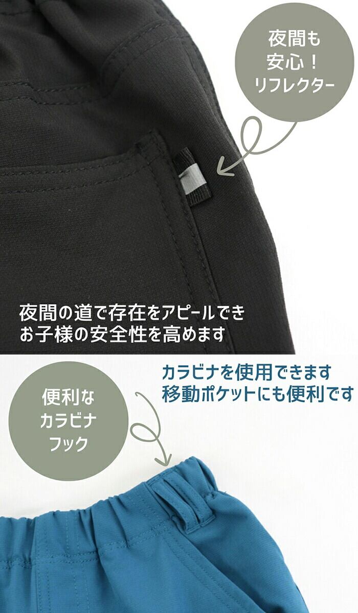 ・夜間も安心なリフレクター付。ハンカチや小物が入るポケット付。