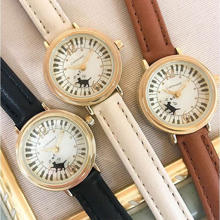 ・秒針の動きに合わせて猫が鍵盤の上をお散歩。楽しいディテールが魅力の腕時計♪