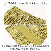 ・しゃがんでも苦しくない、ストレッチ性のある生地を使用。大人リラクシーなアイテム。
