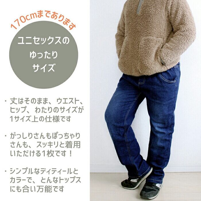 ・丈はサイズ通り、ウエスト・ヒップ・わたりのサイズは1サイズ上のゆったり仕様!