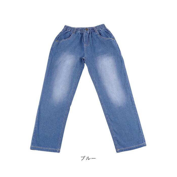 ・しなやかストレッチデニムでやさしく快適な履き心地。ウエストはぐるっと総ゴムで着脱もラクラク。
