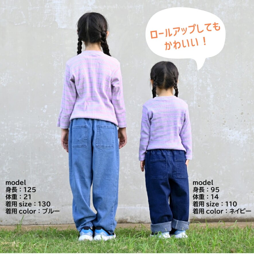 ・しなやかストレッチデニムでやさしく快適な履き心地。股ガゼット(マチつき)で可動域拡大!ダンスやスポーツにもおすすめ!