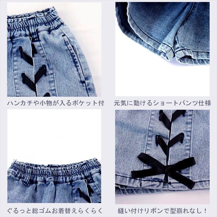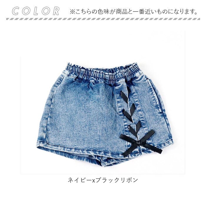 Njeans81016 ケミカルデニム 編み上げスカート風ショートパンツ