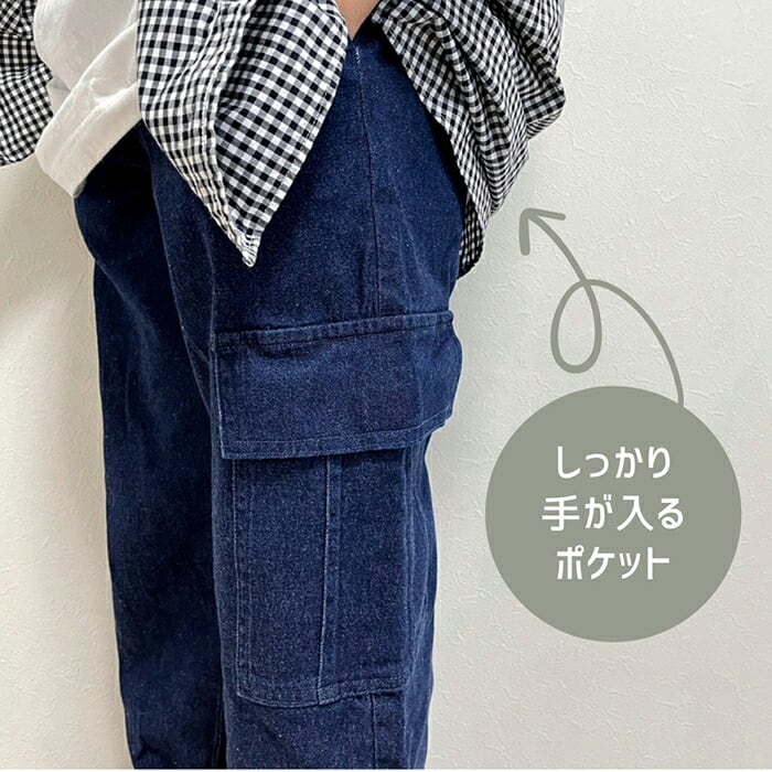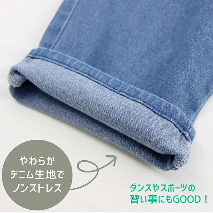 ・しなやかストレッチデニムでやさしく快適な履き心地。どんなTOPSにも合わせやすく、通園・通学に便利。