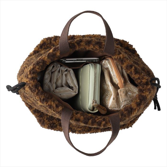 ・巾着の紐でショルダータイプにも。活用幅が広がります。