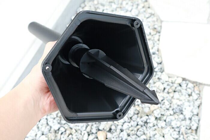 ・ソーラー充電式なので、面倒な電源コードの設置が不要で、地面に挿すだけでOK。