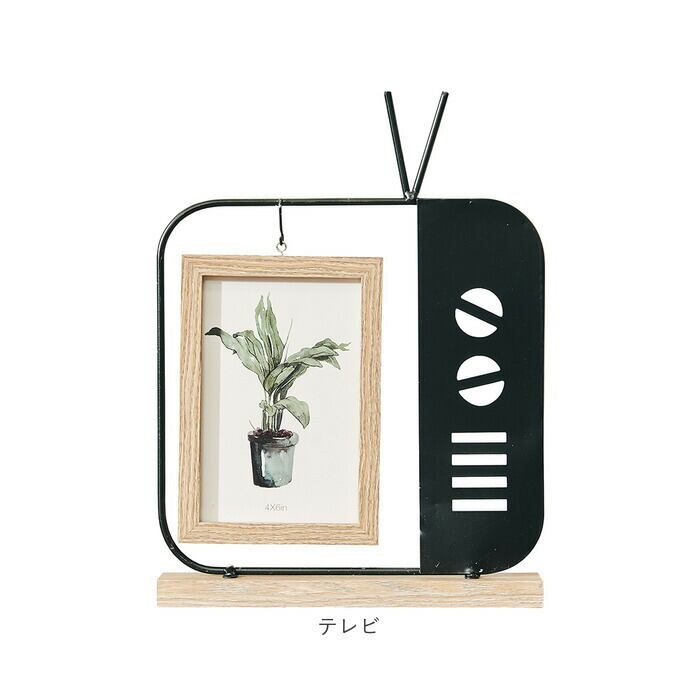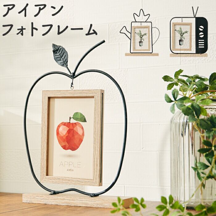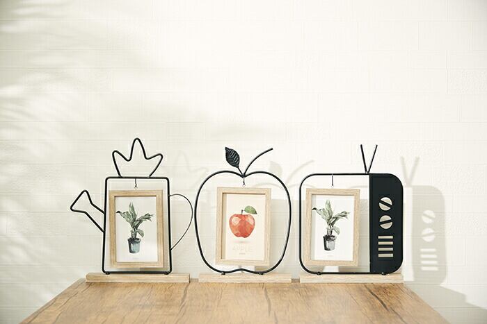 ・リンゴ、テレビ、ジョーロをモチーフにした、ほっこりするデザインのアイアンフォトフレーム。