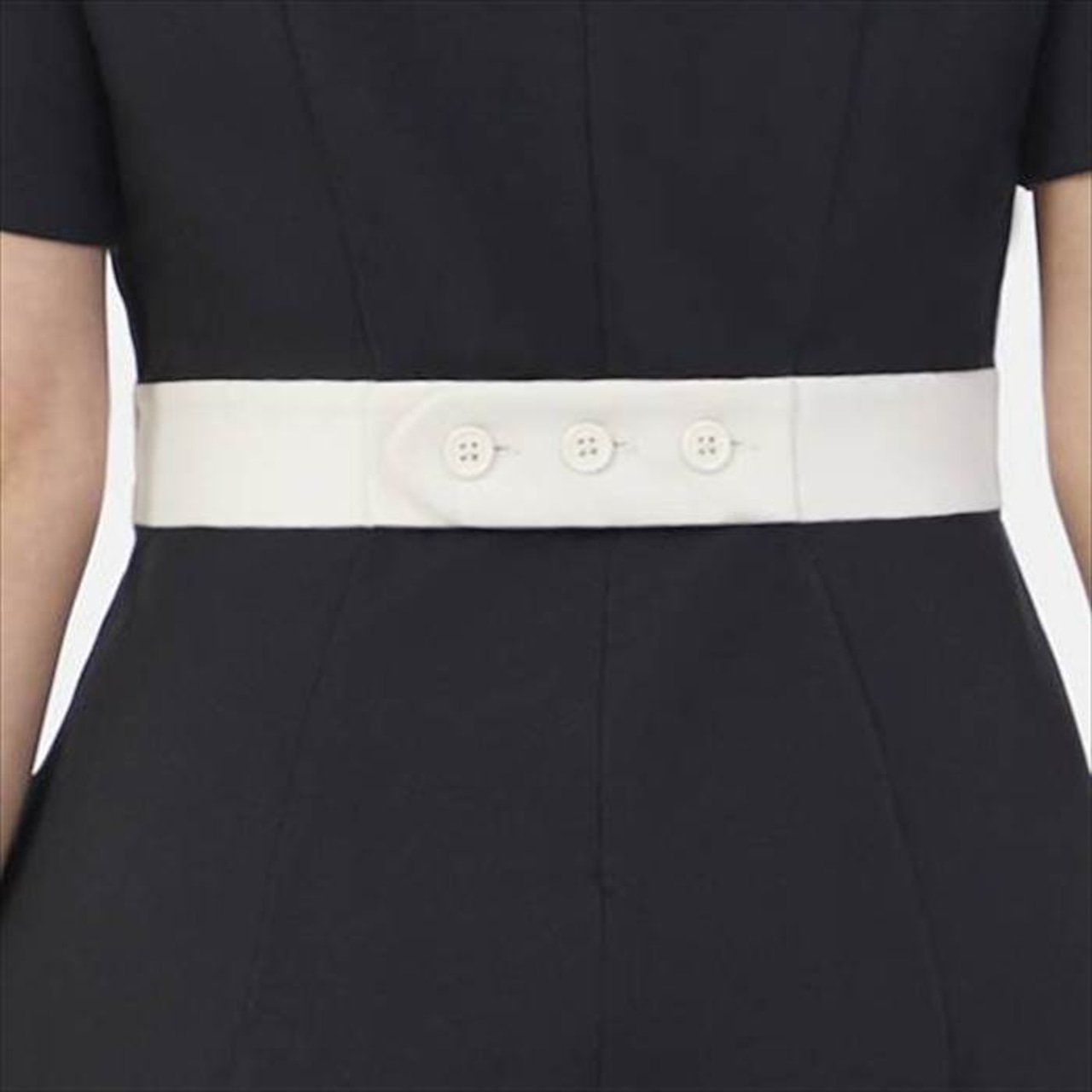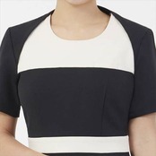 ・ショルダー部分の切り替えが珍しく女性らしいデザイン、クルーネックですっきりした首元に胸元やウエストにも切り替えをプラスしたシックな印象のワンピース。