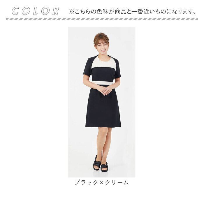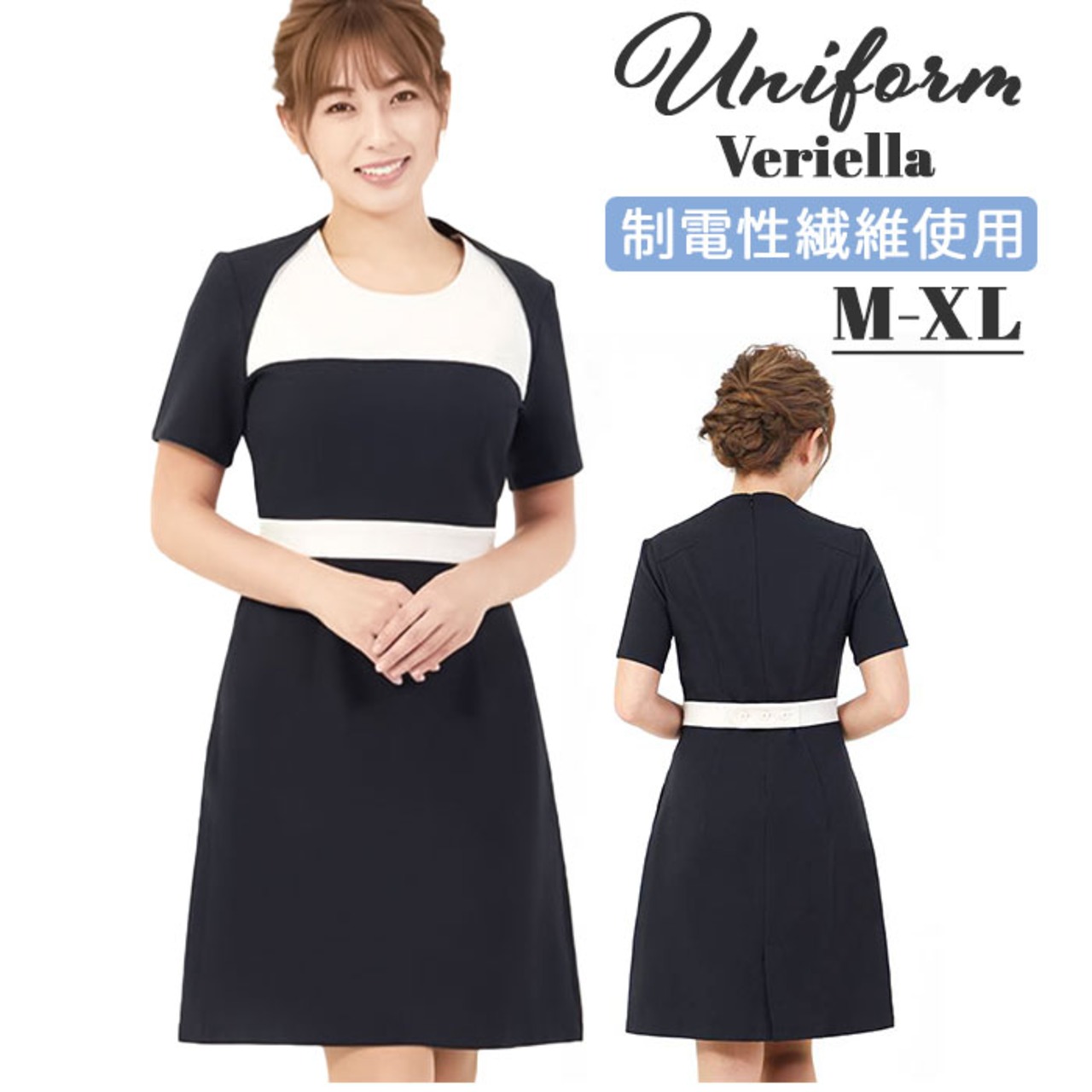 事務 ワンピース 通販 Veriella C 事務服 エステ ユニフォーム 医療事務 制服 オフィス制服 受付 サロン ウェア クリニック エステユニフォーム 半袖 レディース おしゃれ インフォメーション 接客 ノーカラー かわいい