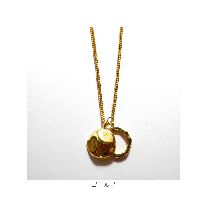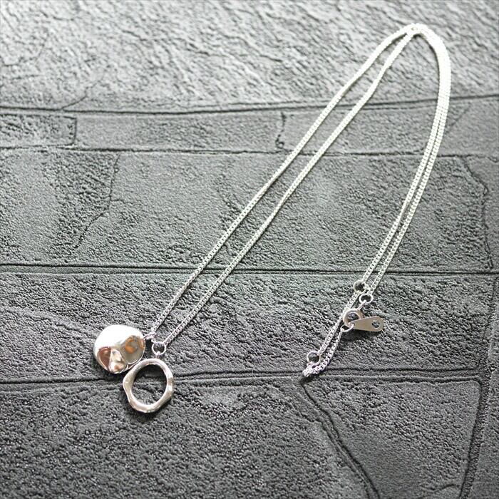 ・変形リングと凹凸オーバルプレートの2連ネックレス。