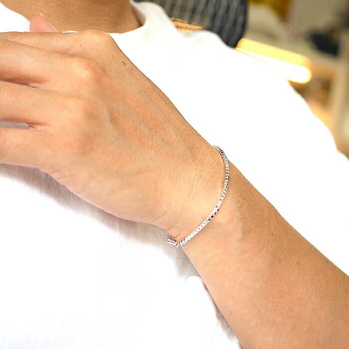 ・直線的でスマートな印象が魅力的なベネチアンチェーンブレスレット。