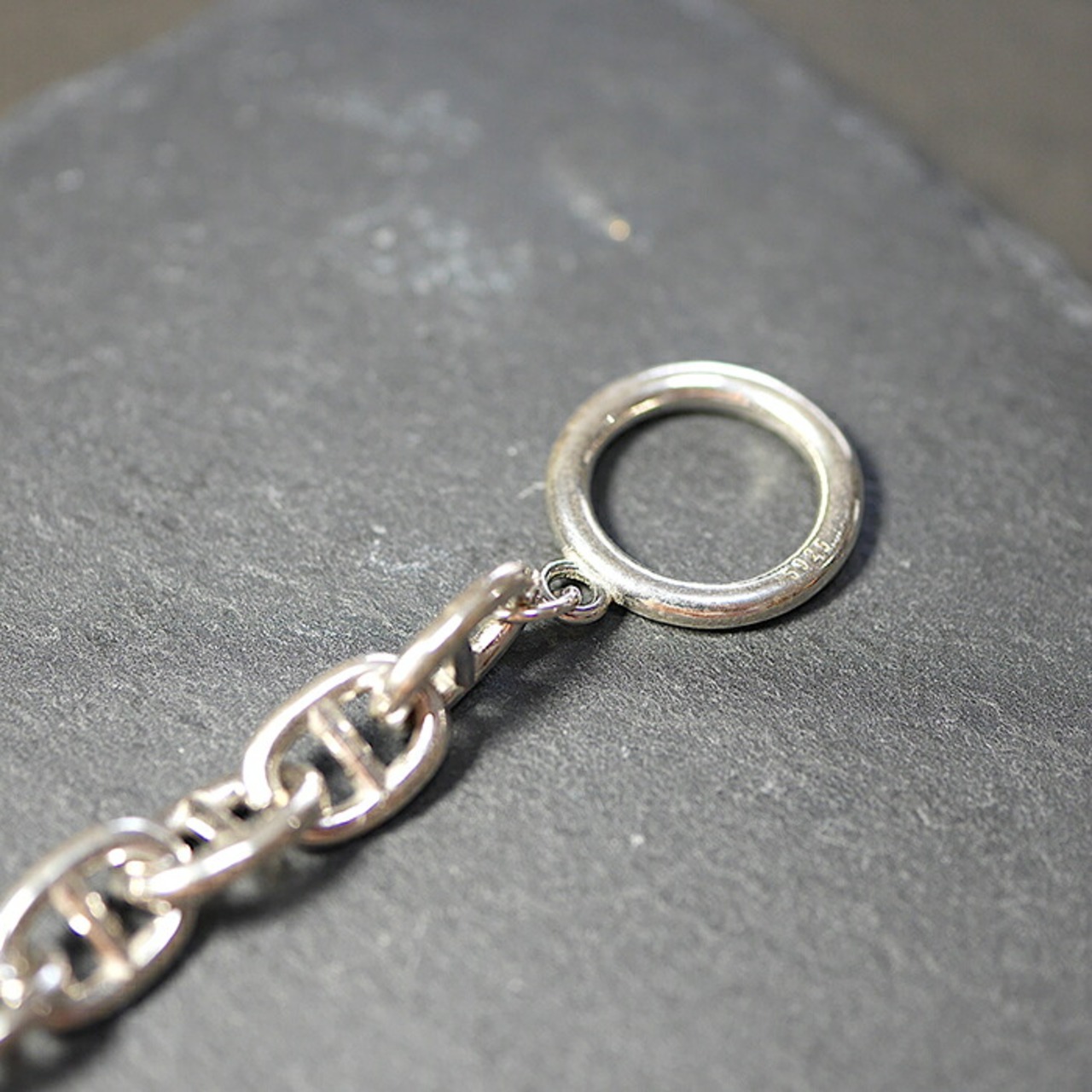 ・存在感のあるシルバーでチェーンラインを描き、アクセントになる質感とぬけ感が大人を漂わせる。