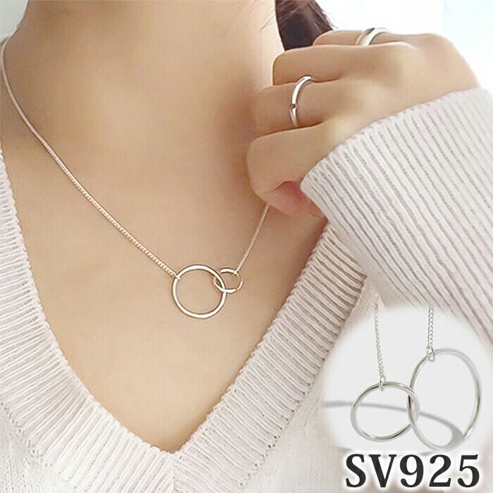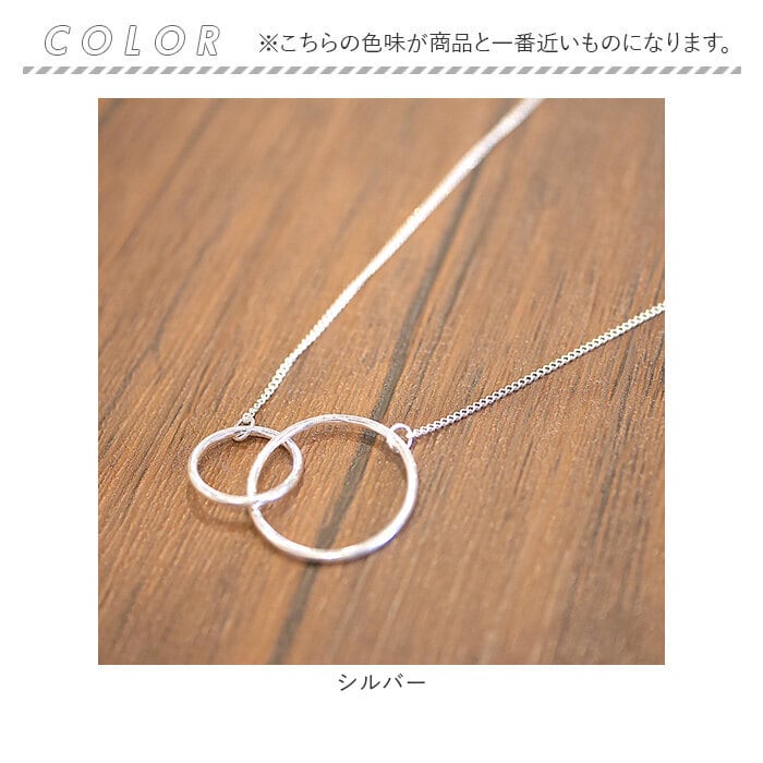 ・大小リングが重なった不思議なデザインのダブルサークルリングネックレス