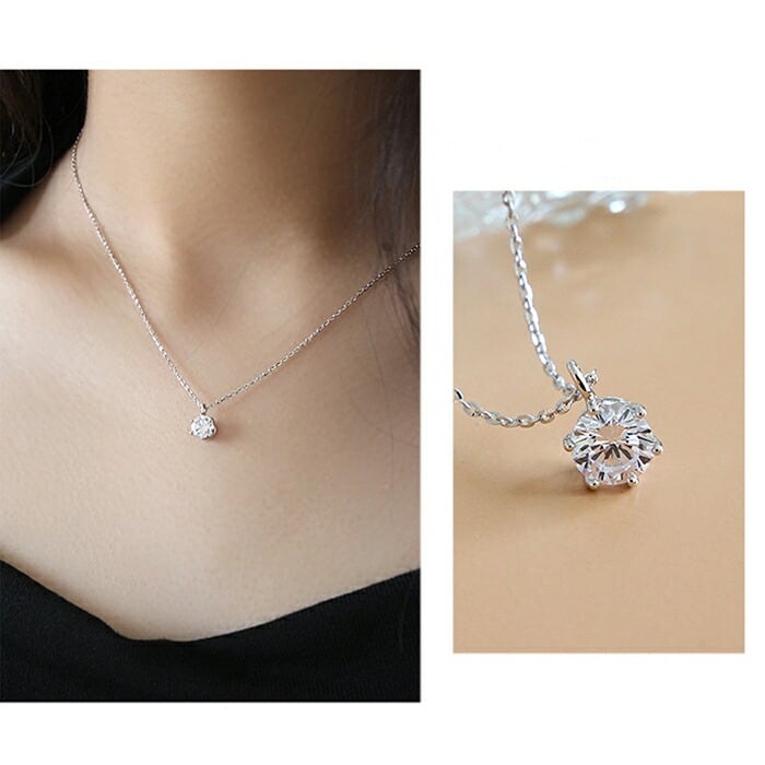 ・どんなスタイルにも合わせやすいベーシックな1粒のキュービックジルコニアネックレス