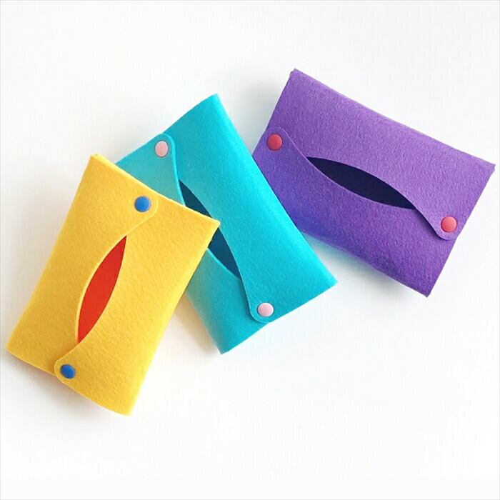 1枚のフェルトを折りたたみスナップボタンでとめることによりフェルトの力でできたカタチ。