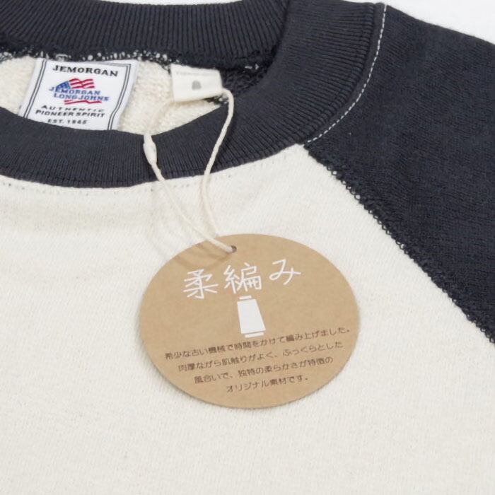 JEMORGAN 柔編み裏毛クレリックラグランスウェットクルー