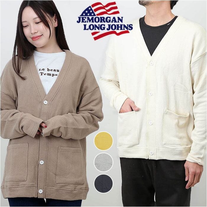 カーディガン メンズ スウェット 通販 JEMORGAN JD375-528 レディース カーデガン スウェットカーディガン 長袖 羽織 はおり 上着 アウター ボタン ジェーイーモーガン トップス アメカジ おしゃれ リラックス シンプル 春 秋 冬