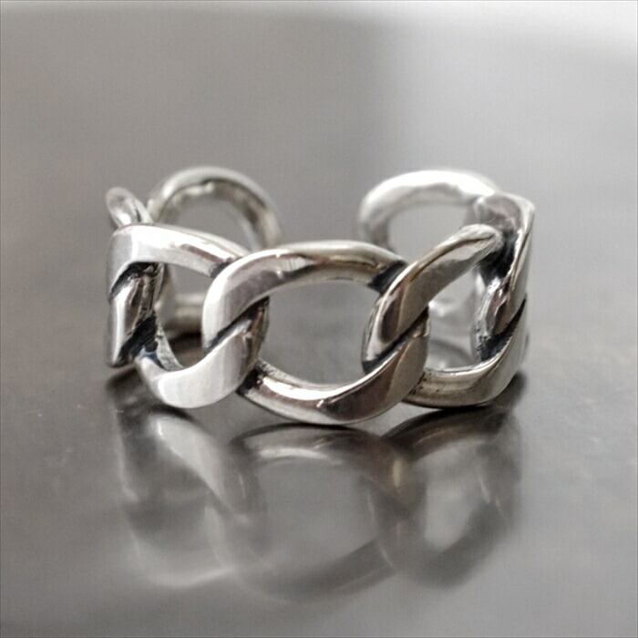 ・抜け感のある大ぶりチェーンモチーフがお洒落なリング。肌に沿う細見え人気デザイン。