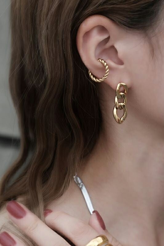 ・喜平チェーンを連ねたボリュームがありつつも上品なスタッドピアス。