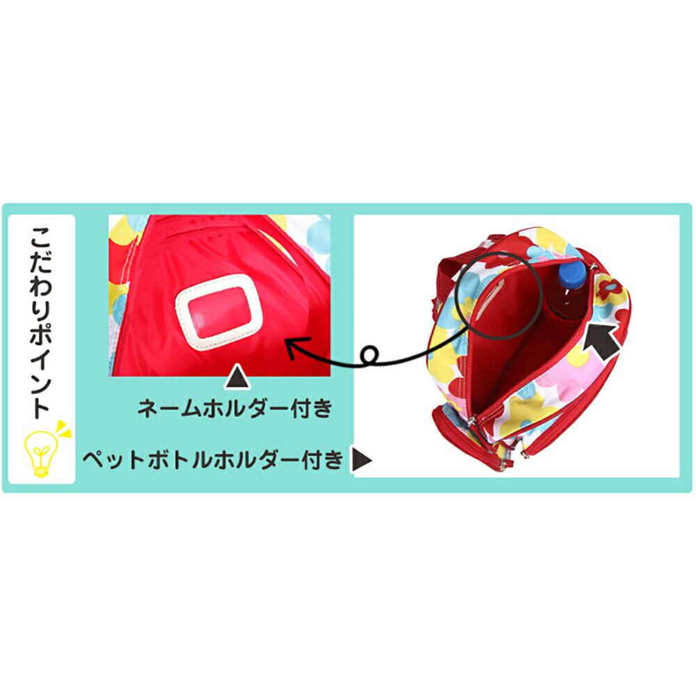 ・子供の大好きなモチーフがたっぷりつまったリュックサックは、肩部分にアジャスターがついているので、成長の早い幼少期でも長い間ご利用いただけます。コンパクトな本体には大きいポケットが付いているため収納力も抜群。楽しい遠足やピクニックのリュックとしてはもちろん、通園やおけいこバッグにもお勧め!撥水加工済み