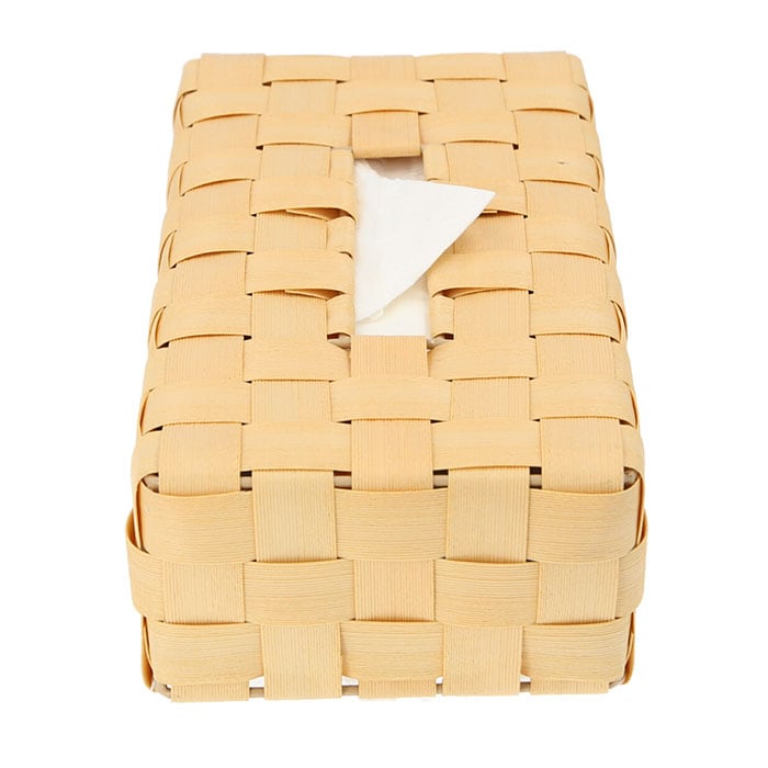 ・経木とは、スギやヒノキなどの木材を薄く削りだした材料のこと。経木の柔らかでナチュラルな質感を天然素材風のPE素材で再現したティッシュカバー。