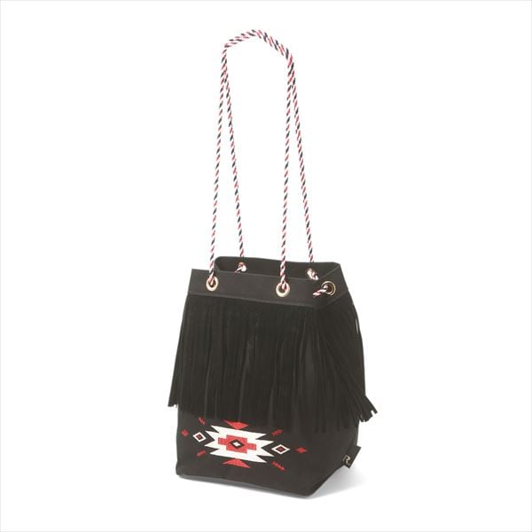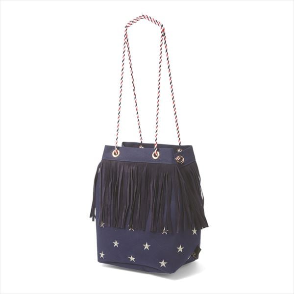 トレンドのフリンジをあしらったポシェットにもなるトートバッグです。カラフルな紐の持ち手がアクセントに。