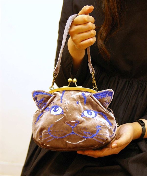 猫好きにはたまらないリアル顔の猫ガマ。刺繍での表情作りが贅沢です。