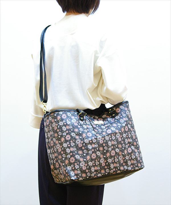 沢山の花を散りばめ、ダークな色合いの大人花柄がポイント。季節に合わせ、持ち易いカラーリングになっています。