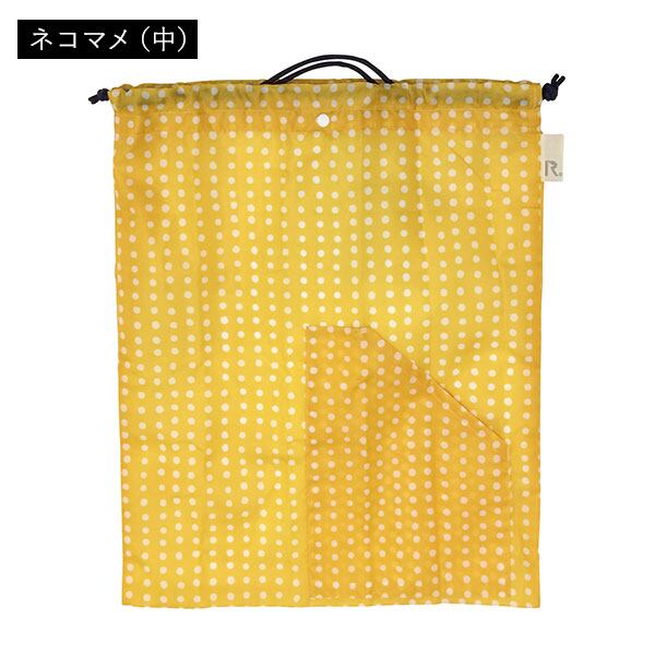 「中」サイズは、靴袋やお風呂のおともに。巾着口元にはプラホック付。