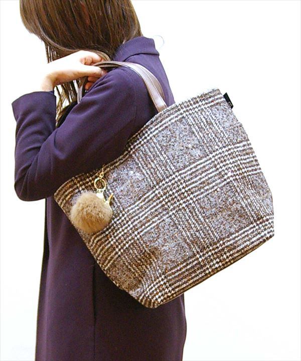 ブラックとブラウンチェックの落ち着いたカラーは大人の女性にピッタリな商品です。容量もあり、お仕事トートバッグとしても活躍します!
