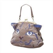 猫好きにはたまらないリアル顔の猫ガマ。刺繍での表情作りが贅沢です。