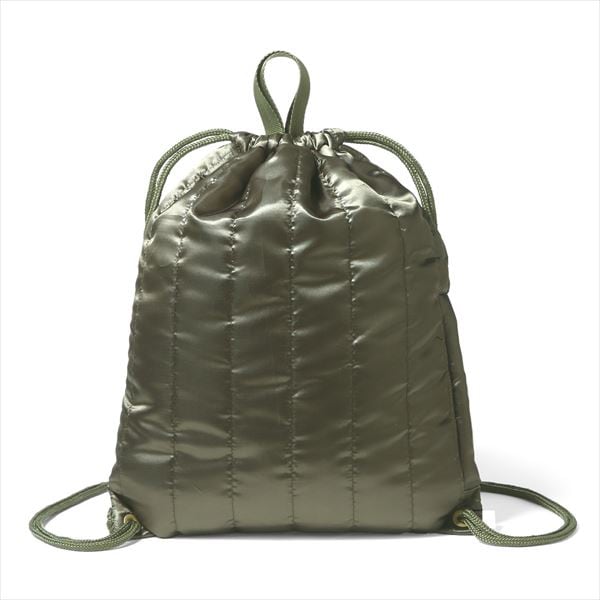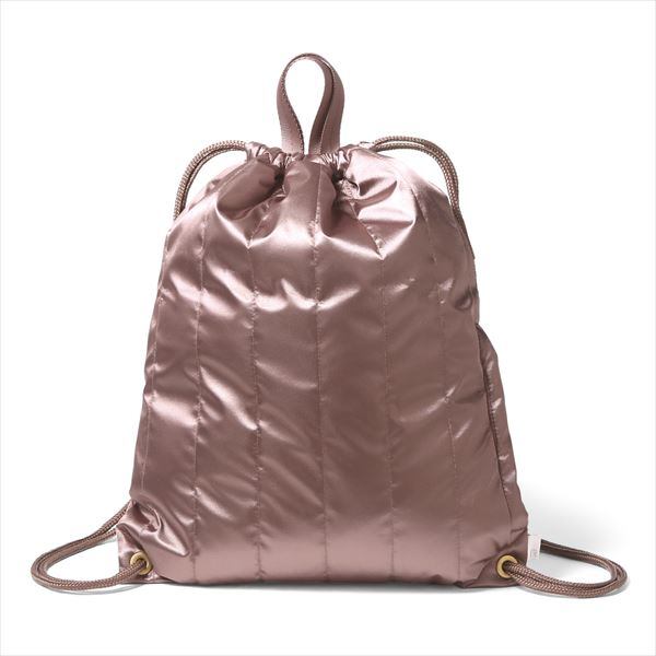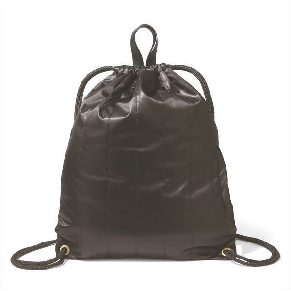 光沢のあるサテン生地にキルティング加工を施した、使い易さバツグンのナップサックタイプ。