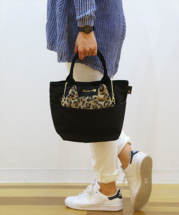 本体は帆布。持ち手や、ネコポーチは起毛している素材を使用し、素材の違いも楽しめる商品です。