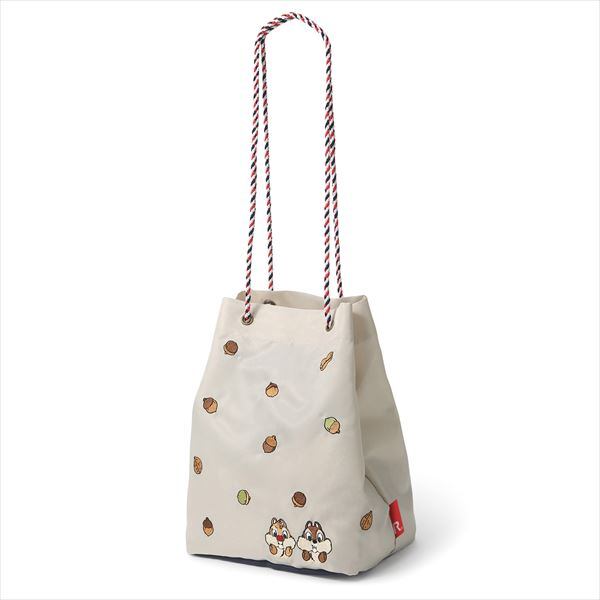 カラフルな紐の持ち手がアクセントに。本体にははっ水加工が施されています。
