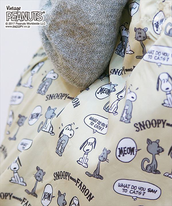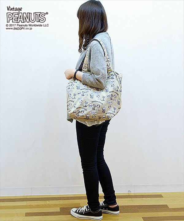 プリント面と無地面でのリバーシブルで使え、コンパクトに収納出来る、”クルット”のPEANUTSデザインです。