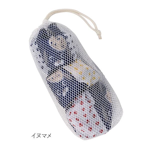 お手玉3つがちょうど入るメッシュの専用袋付です。